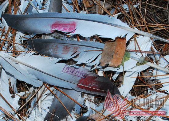 目前,这些带有文字的羽毛已被蒙阴县崮文化研究会收藏,他们希望能通过羽片上的文字信息,与信鸽协会或信鸽的主人取得联系,解开事情的真相。