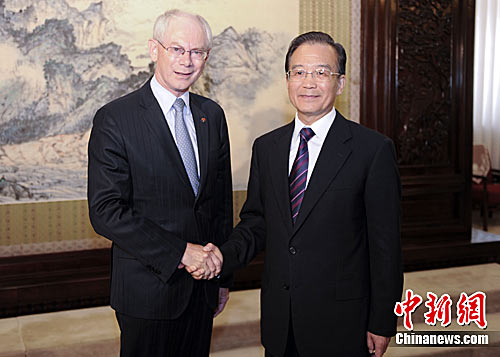 温家宝表示,中方对欧洲保持稳定和繁荣抱有信心,支持欧洲一体化进程,高度重视欧盟的国际地位。我期待今年再次同范龙佩主席和巴罗佐主席一道主持中欧领导人会晤,增进政治互信,规划各领域合作,密切在重大国际问题上的协调配合,推动中欧全面战略伙伴关系取得新进展。