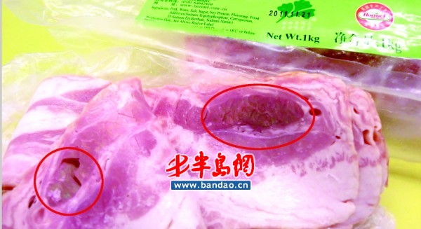 当问及为何以前从未见过这样的猪肉时,负责人梁女士说:“就这个问题,我们也专门咨询了我们的质监部门人员,他们告诉我这可能是由于切割肉时刀比较快,产生的一种自然反应。这种问题在之前培训时,公司就曾告诉我们是有可能发生的,但这还是我第一次遇到。”同时,梁女士表示如果冯女士不放心可以为其更换一块新的,或者也可把肉拿到专业部门检测。