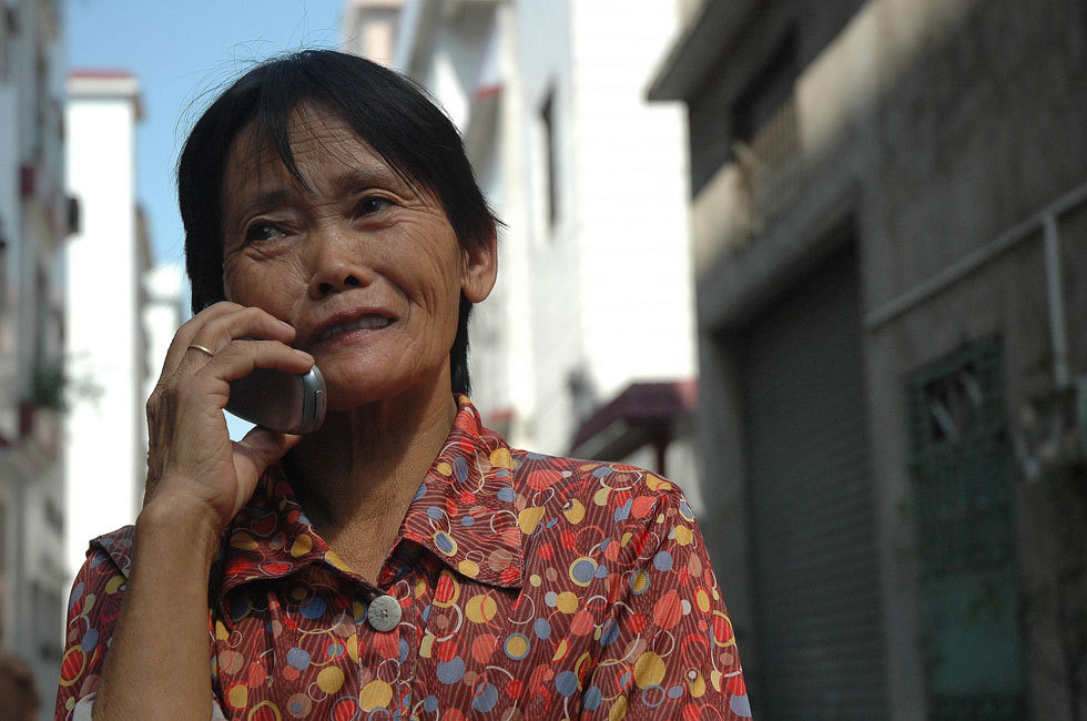 资料图:10月17日,“最美婆婆”陈贤妹与小悦悦的家人通电话。