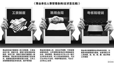 本次征求意见稿,涉及事业单位改革中的多项目标,如聘用制度、工资制度、社保制度。征求意见稿对工资福利和社会保险明确规定:事业单位工作人员的工资制度、工资构成,需执行国家的统一政策;国家建立健全事业单位工作人员的社会保险制度。