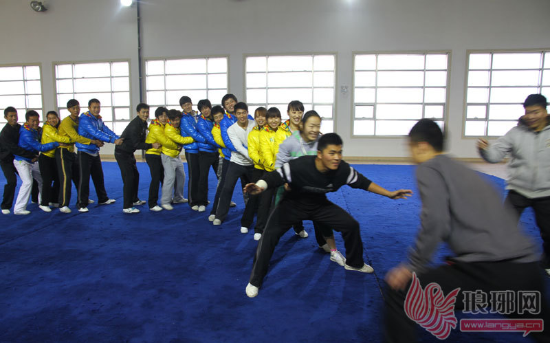 为了活跃气氛,每次训练前,队员们都会做个热身小游戏,有时候是贴烧饼,有时候是老鹰抓小鸡。