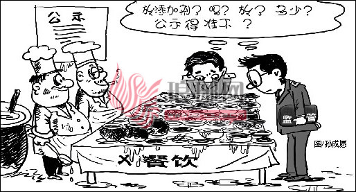 为严厉打击食品非法添加和滥用食品添加剂行为,让市民能够吃得放心、吃得明白,近日,市监管部门相继实施了约谈餐饮服务单位,要求各餐饮单位如期向社会各界公示所使用添加剂等措施,然而,近日记者却在走访调查时发现,食品添加剂公示却遭遇了执行难的窘境。而面对如此添加乱象,“公示添加剂就能管住滥用食品添加剂吗?”“公示食品添加剂就能成为评比天平吗?”“怎样才能保障检查制度规范化?”也成了众多市民心中的疑问。