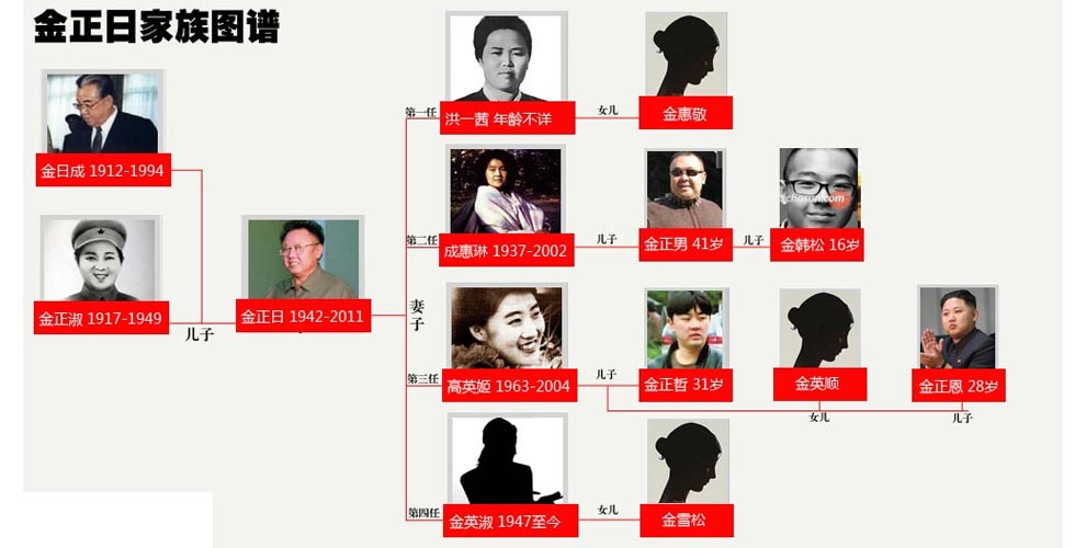 【金正日去世】金氏家族主要成员关系表