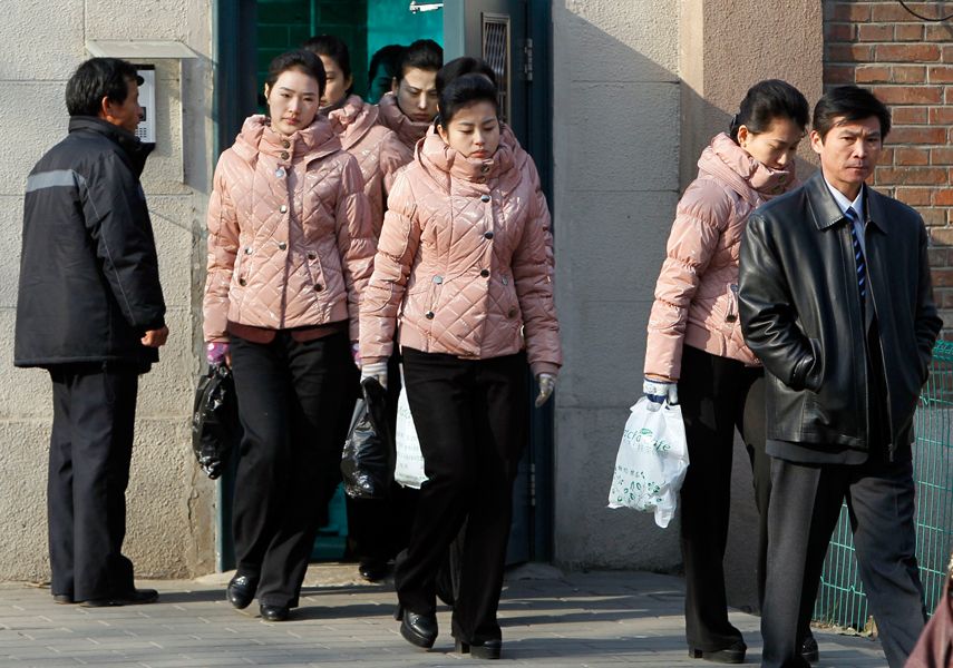 12月20日,在京朝鲜人参加悼念活动后走出朝鲜驻华大使馆。