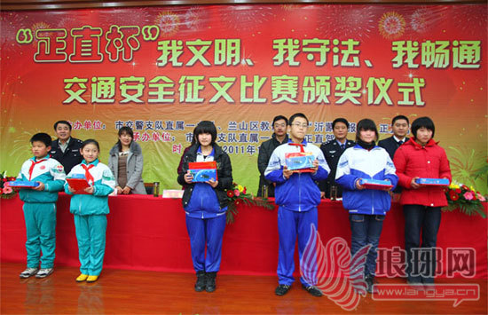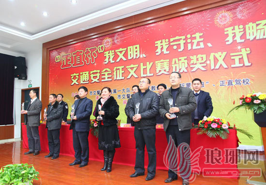 12月21日,历时4个多月的“我文明、我安全、我畅通”交通安全征文比赛进行颁奖仪式。该活动从2011年8月开始截止到2011年11月,得到了各中小学校广大师生、家长及社会各界地大力支持和广泛合作,在社会上尤其是中小学生中产生了强烈反响,共收到参赛作品1300多篇。经专家组成的大赛评审委员会,本着公开、公正、平等、透明的原则,经过严格筛选,共评出一等奖3名、二等奖6名、三等奖9名。另有50名同学获得纪念奖。