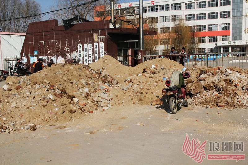 据市民反映,费县群星学校校门被当地村民用土石堵住,进出极为不便。22日,记者赶到了现场,在学校门口看到了一群村民围在学校门前,学校大门已被土石堆堵得严严实实。如果想进入学校,必须先翻过一人多高的土石,进出十分不便。