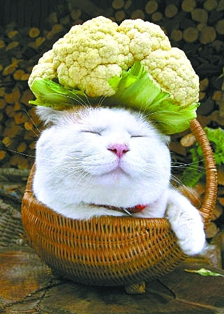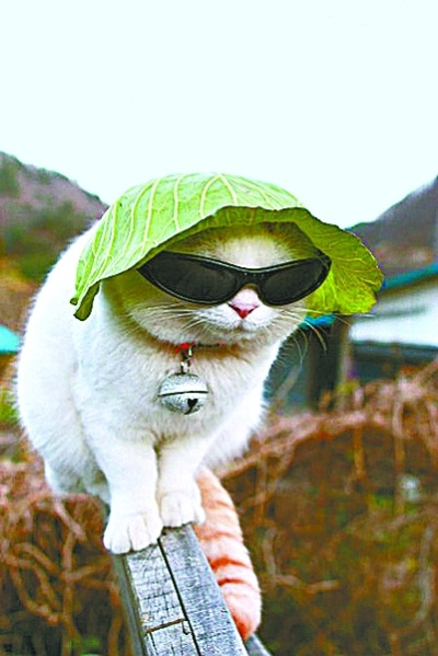 “猫叔”来自日本乡下,它的头出奇大,喜欢眯眼,喜欢戴墨镜,喜欢顶东西,还喜欢钻进狭小的篮子里睡大觉。其主人出于单纯爱好,给这只生来就有着大大脑袋的猫拍摄了一些顶着花朵或农作物的有趣照片,然后贴在自己的博客上展示。没想到,这只已是9岁高龄的普通猫咪就此迅速蹿红网络,它一举被出版社看中,先后在日本出版了3本写真集,接受众多宠物杂志和宠物节目的专访。与此同时,它还马不停蹄地为诸多商品做起了形象代言,俨然成为大明星。