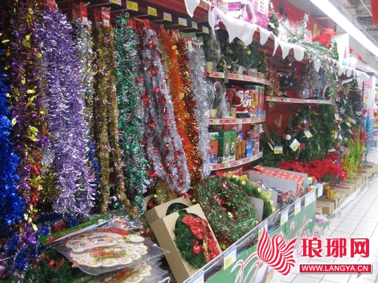 某大型超市里琳琅满目的圣诞饰品