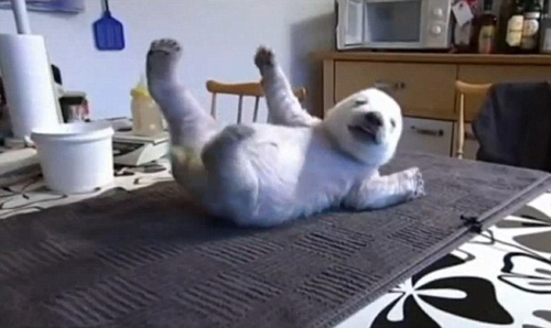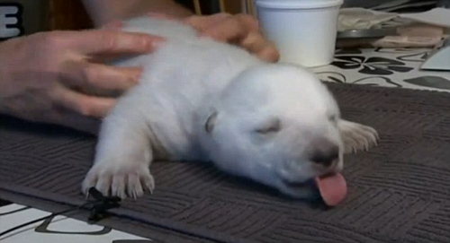 超萌北极熊幼崽自幼奶瓶相伴 酷爱做按摩(图)