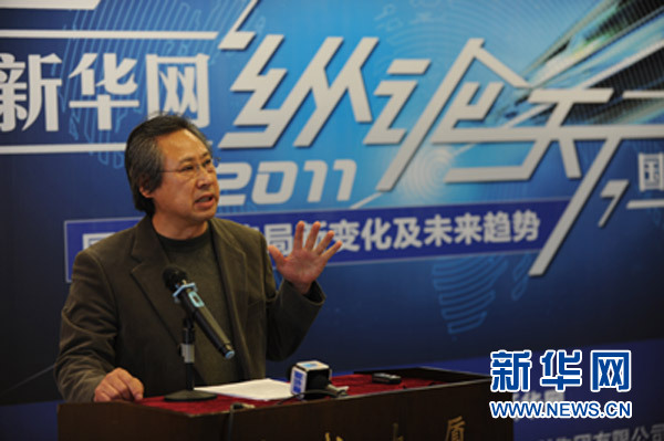 2011年12月16日,新华网“纵论天下”系列研讨会第二场《2011国际战略格局新变化和未来趋势》在京举行。图为中国国际问题研究所世界经济与发展研究部主任、研究员姜跃春在发表演讲。新华网 陈杰 摄