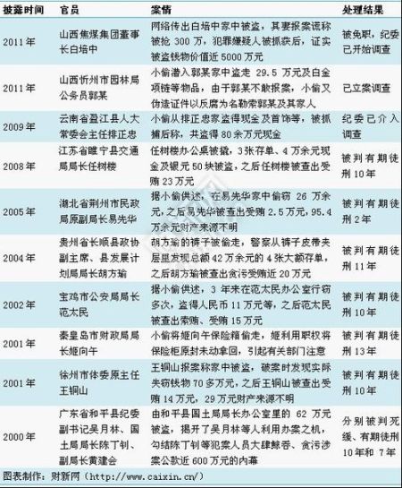 媒体总结过去10年来小偷反腐10个著名案例