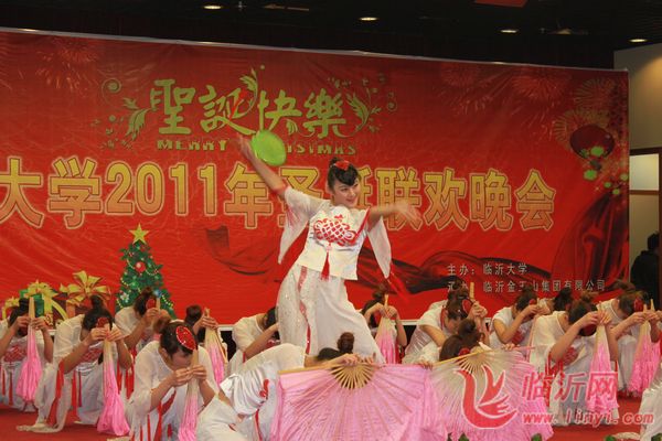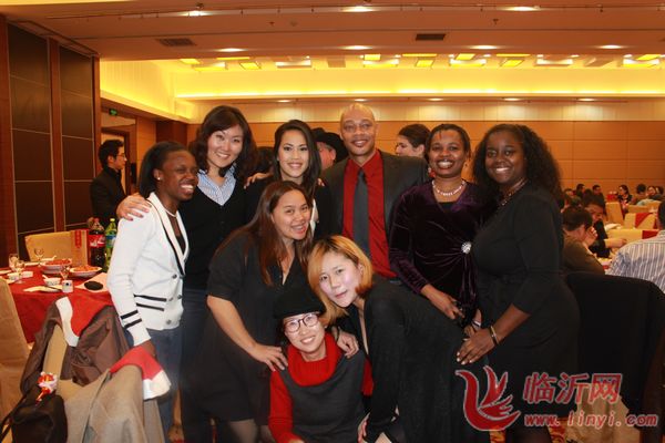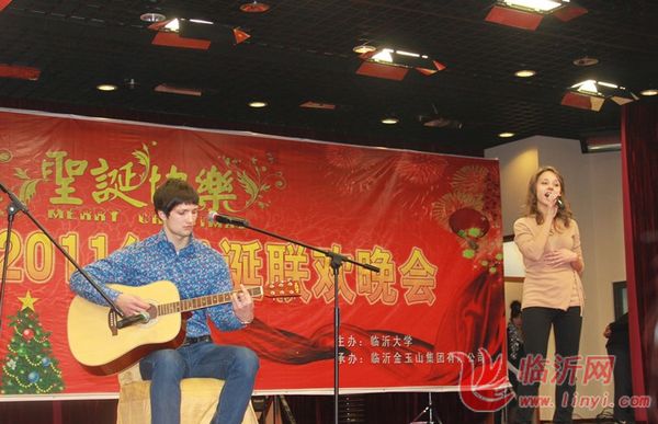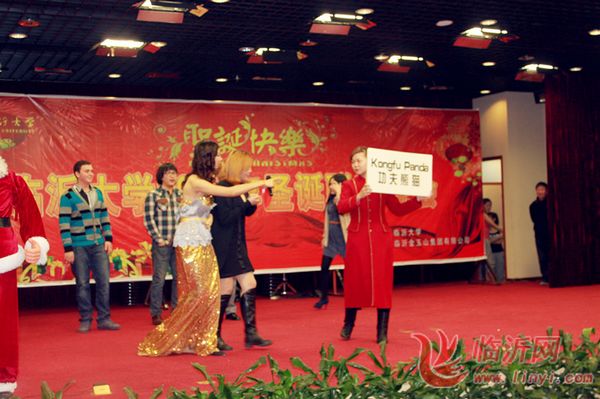 临沂网讯 12月23日晚,临沂大学举行2011年圣诞晚会,广邀社会各界与国外友人联欢,共迎圣诞佳节。临沂市委常委尹长友,沂蒙晚报传媒有限公司、鲁南商报传媒有限公司董事长崔永刚,临沂市水利局局长申作信,临沂市外事与侨务办公室副主任赵明坤,临沂市公安局出入境管理处副处长张培胜,国家、省驻临沂市新闻媒体以及临沂市新闻媒体记者,校友代表,学生家长代表,金玉山置业集团相关人员应邀出席;我校党委书记丁凤云,党委副书记、纪委书记石立岩,党委副书记谢亚非,副校长李培江、姜同松、王明福、王勇、刘占仁出席晚会,与临沂大学外教、外国留学生、外国专家欢聚一堂,庆祝节日。