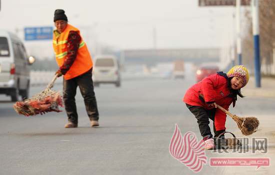 25日下午2点多,市民王先生开车路过临沂机场西侧的205国道时看到,一位环卫工人正带着4岁的孩子扫马路,“孩子拿着笤帚扫得挺认真,看见这么小的娃娃就懂清洁卫生,我很受感动。”王先生说。