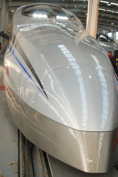 更高速度试验列车12月25日在中国南车四方股份公司落成。这列外形犹如“宝剑出鞘”试验列车的落成,不仅为进一步巩固商业运营高速列车的安全性、可靠性提供了试验研究平台,而且标志着中国高速列车前瞻性研究取得了阶段性重大成果。