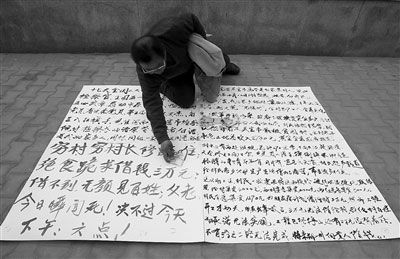 白彦民:实在不行,我再想别的办法乞讨。我会用鼻子写字,去卖艺。有可能今年我还是不能在家过年,什么时候把钱还了,我才能回家过年。我对债主说,钱会还你,政府会还你。说这话,我心里很慌。路修成了,钱还不了,还是我的事儿。