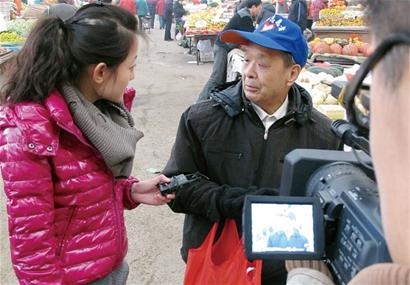 上周一,中央电视台新闻频道记者胡洋和同事来到青岛,专门采访本报报道的“裸捐老人”周宝存。“在没见到老人之前,我们很难想像,一个老人自己到菜市场捡菜叶吃,却把省下的钱捐给困难的大学生。”胡洋表示,见到老人后,他们亲眼看到周宝存到团岛的早市上从菜摊要走冬瓜皮,在采访菜摊的女摊主后,对方告诉他们自从市场搬到这里后,老人就经常来要菜叶的事情后,胡洋和同事都表示对老人充满了敬佩。“采访时,还有其他一些市场里的摊主给我们讲老人的故事,讲他从来都只买便宜菜的事情,讲得让人挺心酸。”胡洋说。