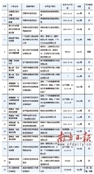 记者查阅了国家食品药品监管局公布的曝光名单发现,此次抽检的问题化妆品主要为美白、祛斑类产品。18种违规问题化妆品中,有13种被抽样单位或标示生产单位位于广州、深圳、河源、连平、清远等广东省内地市,占比超过七成。