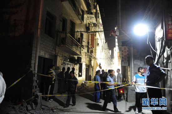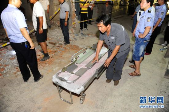 5月19日下午6时左右,武汉长丰大道一在建的五层楼房突然垮塌,多人被埋,目前伤亡情况不详。这是垮塌现场。新华社记者 郝同前 摄
