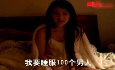 网络红人的走红,花样百出,无所不用其极,唯一不变准则的就是要脸皮厚。尤其是女人,只要豁得出,就没有炒不起来的。近日,网上出现一个视频,一面容娇好穿着睡衣的美女,在一酒店客房的床上头发凌乱,还毫无羞辱感地在网上扬言:“我要睡100个男人。”