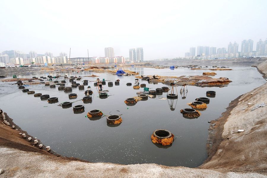 5月19日上午8时许,山东胶南一工地建筑因海水倒灌形成一片泽国。