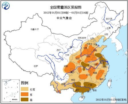 今天早晨到上午,山西中南部、河北南部、河南中东部、山东西部、安徽北部、陕西关中平原、四川盆地、湖北东部、湖南西部和南部、江西东部和西北部、浙江西南部、福建西部及云南西南部等地有能见度不足1000米的雾,部分地区不足200米。另外,江苏、湖北中西部、广西、广东中西部等地有霾。