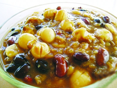 记者了解到,不少人烧腊八粥往往会买回来一大堆原材料,只要认为是有营养的东西都买一点,糯米、花生仁、莲子、黄豆、赤豆、绿豆、白果、红枣等一股脑地倒入锅里,熬出一锅飘香扑鼻的腊八粥,然后男女老少每人一碗。其实,在东南大学附属中大医院中医内科主任王长松看来,这种不分体质随意选取配料的吃法是有些问题的。