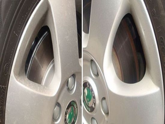 蒙先生车辆轮毂(右)和同一型号新车轮毂对比