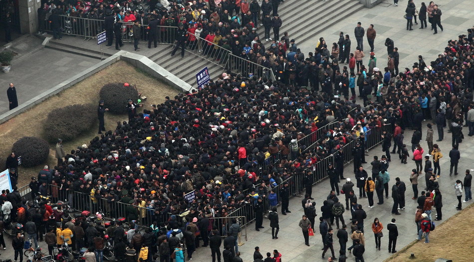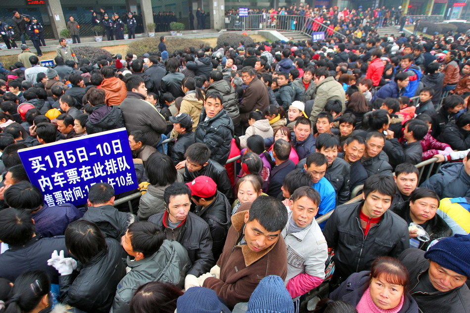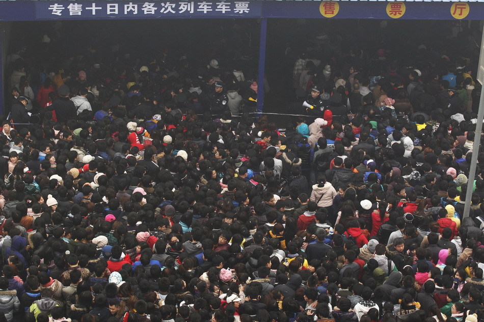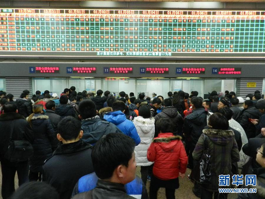 1月1日,西安火车站售票大厅和临时售票点人头攒动,场面十分火爆。尽管已经实施了互联网售票,但大量旅客仍拥至火车站购票。多位排队购票者表示互联网售票还存在注入登录困难、仍需排队取票、支付不方便以及流程不熟悉等问题,因此还是选择了传统的购票方式。新华社发(焦宏涛 摄)
