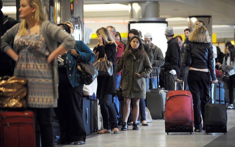 12月30日,在北京西站西广场临时售票处的售票窗口,旅客在排队购票。随着春运火车票的开售,北京西站启用西广场临时售票处的120个临时售票窗口,以应对春运购票高峰。据了解,临时售票窗口的功能与固有售票窗口相同,并设有当日车票购票区、农民工购票区、学生购票区、网络和电话订票取票区等不同功能的区域,以减少旅客排队等候时间。新华社发(刘会昌 摄)
