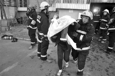 海淀西二旗消防中队的救援人员称,他们到达火场后,得知2层至6层都有人员被困,其中还有两名未满一岁小孩,救援人员携带救生设备迅速进楼搜救。