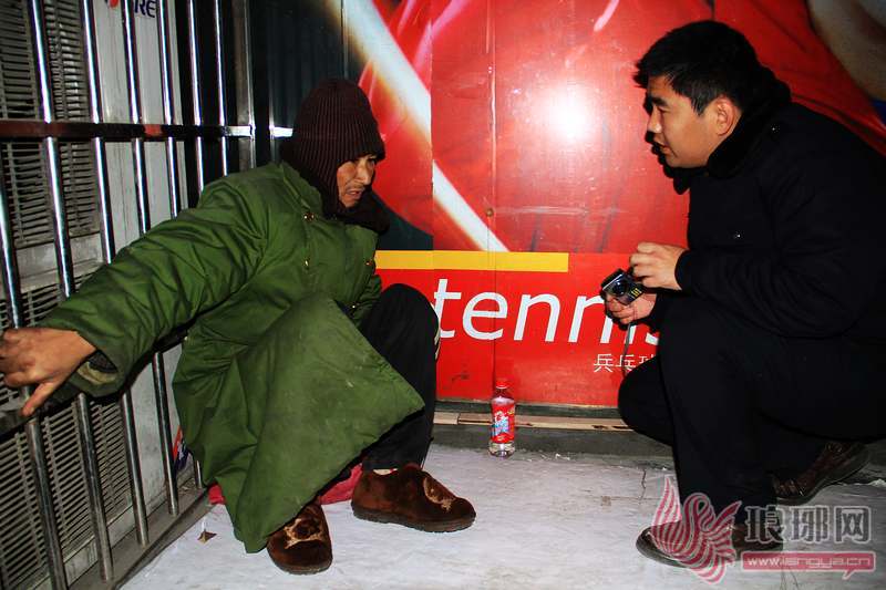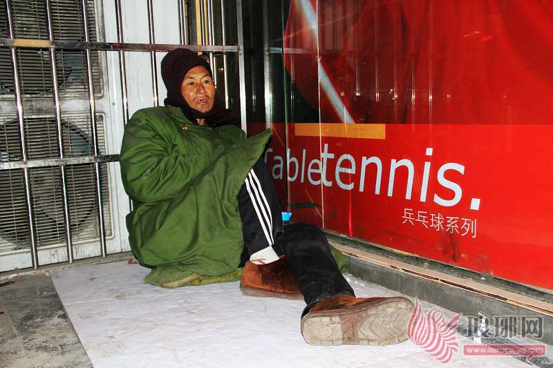 流浪者王广林卷缩在商场一处并不避风的地方。记者 徐升 胡跃东 摄
