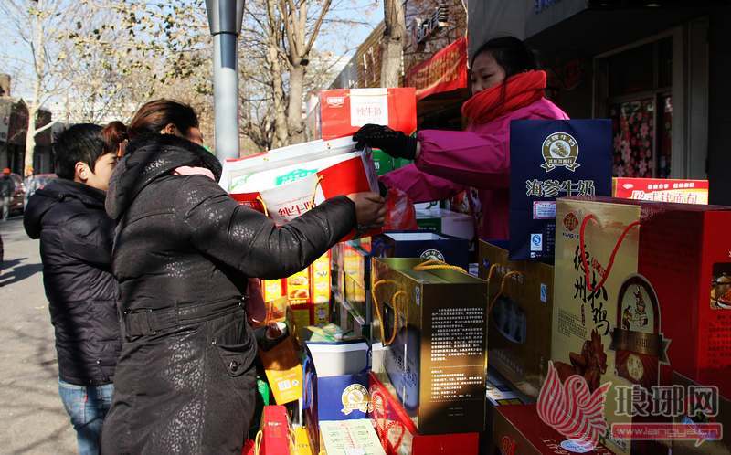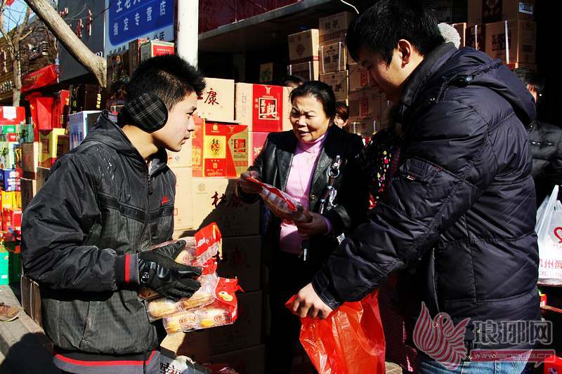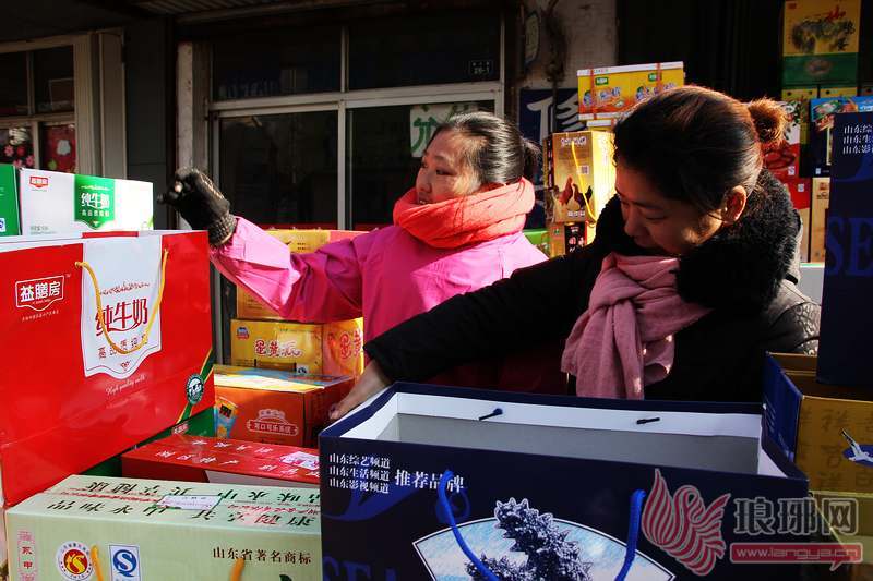 1月4日下午,市区银雀山路与羲之路交会处一家批发商店,一些市民正在购买年货。
