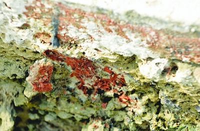 拱门石砖上的明代朱砂。高林胜 摄