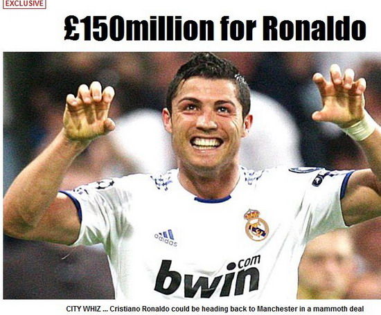 《太阳报》:曼城1亿5千万英镑砸C罗