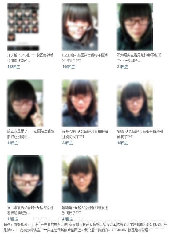 结果没想到,此手机正默默开启着iCloud云服务呢,于是乎这些照片就被同步到了云端的照片流里,然后又同步给了失主。盛怒之下,失主索性直接将其中不少照片传到了网上,一时间闹得沸沸扬扬,在人人网都地方已经相当火爆。