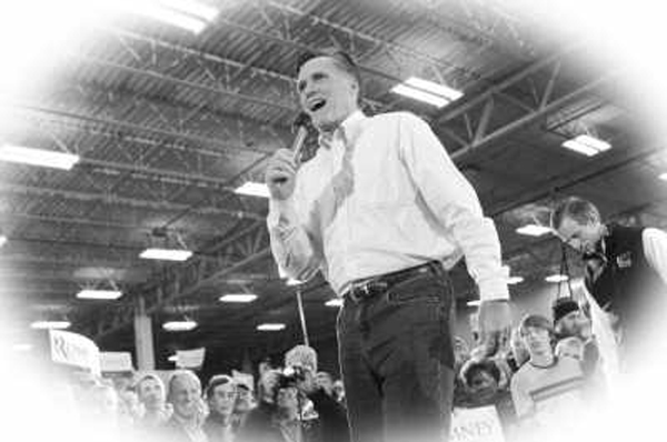 1月3日,艾奥瓦州举行美国总统选举共和党首场党内预选。图为1月2日,在美国艾奥瓦州首府得梅因,美国共和党总统竞选人、前马萨诸塞州州长米特·罗姆尼举行竞选集会。新华社记者 张军 摄