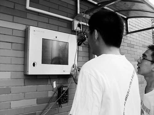 3、记者将买回的指纹膜贴在食指上,然后放入指纹考勤机,屏幕显示“指纹确认08888”,随即大门被打开。