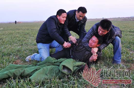 民警一拥而上,将嫌疑人赵某摁倒在地。