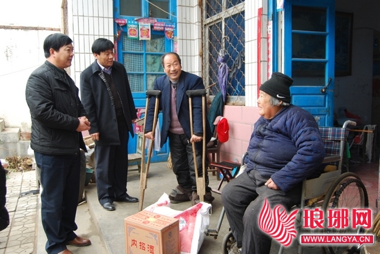 “让群众过好年,送温暖到基层”是平邑县丰阳镇2012年元旦、春节期间开展走访老党员、老干部、困难群众的活动主题。连日来,丰阳镇组织6个活动小组,深入农村、厂矿、学校、企事业单位,把党的温暖送到基层,送给困难群众和困难职工。全镇先后对 108户特困党员、特困群众进行走访慰问,使他们感受到党的温暖。截至目前,共发放面粉、花生油、慰问金等价值5500元的物品。图为走访小组在该镇北埠庄村老党员闫志海家走访慰问。