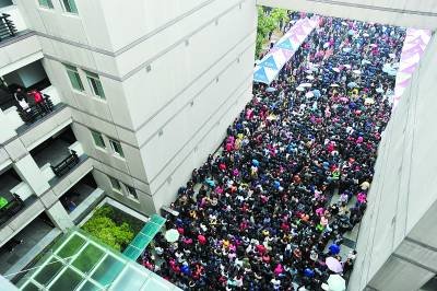 武汉华中科技大学自主招生考试结束,学生走出考场,送考的家长和考生汇集成巨大的人流。 Shepherd C.Zhou摄