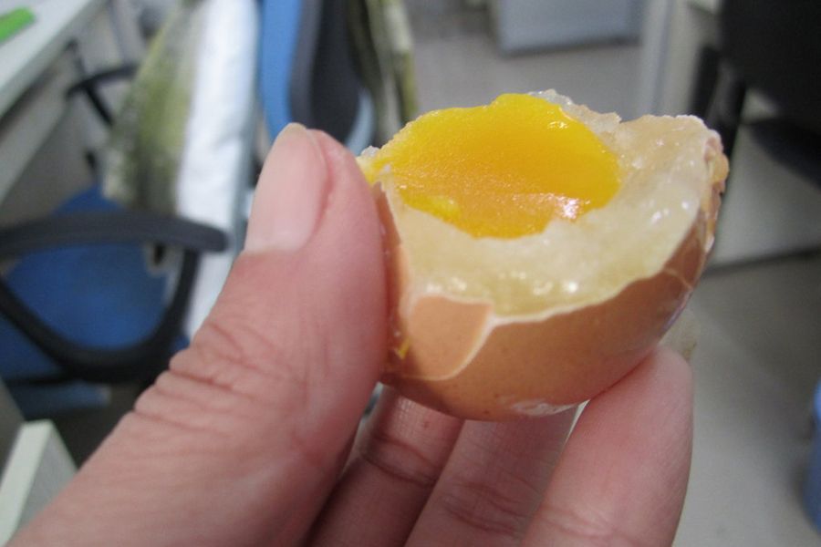 记者用锅煮了20多分钟,发现煮熟后的鸡蛋不仅蛋黄鲜亮,蛋清也变黄了。用手一捏,蛋黄十分有弹性,摔在地上能蹦起20厘米高。