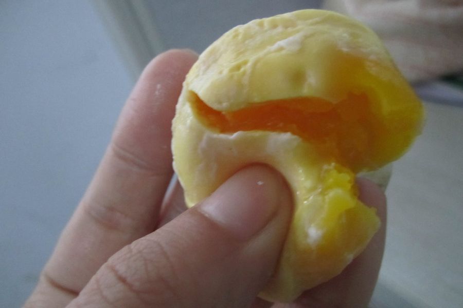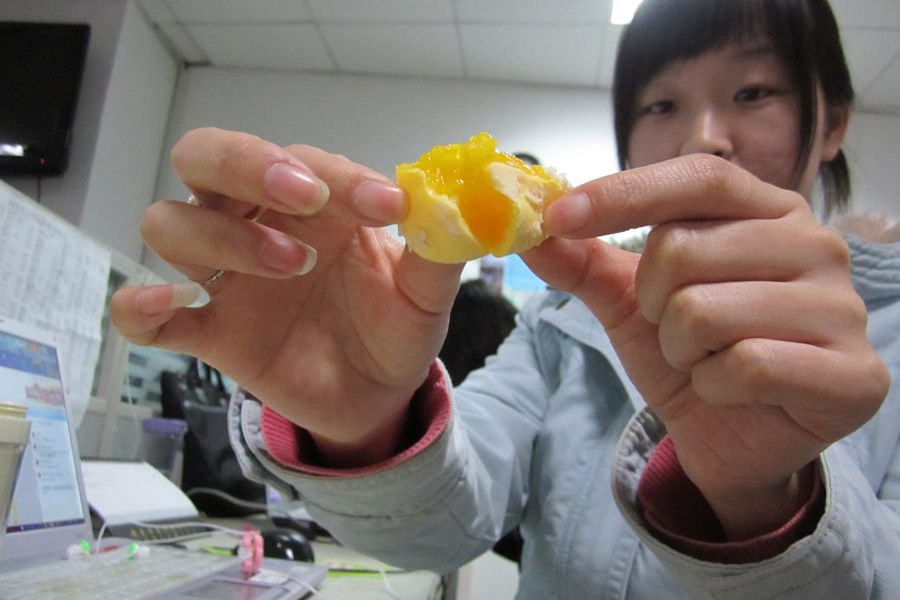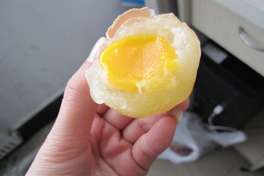 据信,王先生买到的很有可能并非是假鸡蛋,而是被称为“橡皮蛋”的劣质蛋。“橡皮蛋”指的是煮熟后蛋黄有弹性,甚至可当球来抛的鸡蛋,产生原因是鸡饲料中棉籽饼比例过高。图为煮熟的“橡皮鸡蛋”。