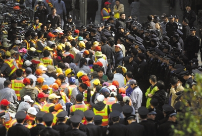 深圳百余环卫工集结讨补偿 大批警员在现场戒备