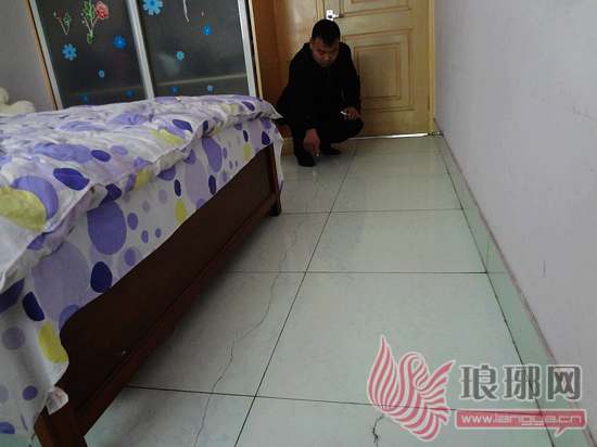 家住市区北园路泰鼎花园5号楼的王先生反映,他家的地面从2007年开始出现裂缝,现在地面裂缝越来越多,已经蔓延了3间卧室。