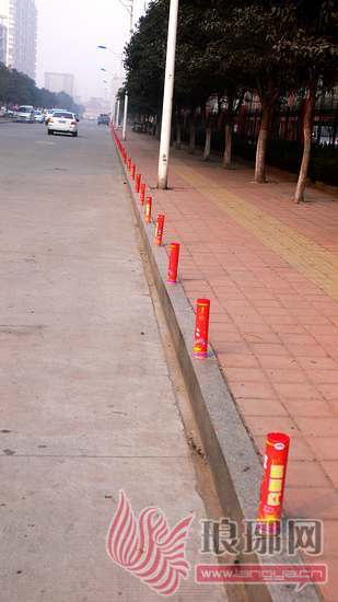 8日上午,金沙路道路一侧新人摆满了礼炮。
