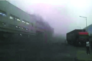 网民曝光的现场照片显示,厂房浓烟滚滚,里面充满火光,大批工人惊慌逃出厂房,有工人戴着口罩。