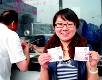 姜小姐和男友约定6月1日回锦州老家结婚。从媒体上得知了动车组实行实名制的消息,她按要求带好了相关证件,在实名车票开售的首日前来“尝鲜”买票。姜小姐说,售票员把她的二代身份证往识读仪上一放就读出了相关信息,确认车次并付款后,车票很快打出,整个过程用时约一分钟。
