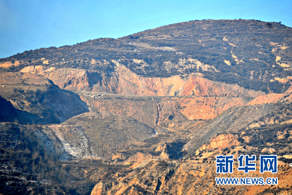 从恒山风景区往南约20多公里,公路两侧多处大山被大面积“开膛破肚”(1月13日摄)。 新华社记者 詹彦 摄