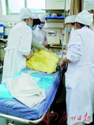 救护车很快将婴儿送到佛山市第一人民医院。记者在急诊室看到,这是一个新生女婴,气息微弱偶尔发出一声哭声。